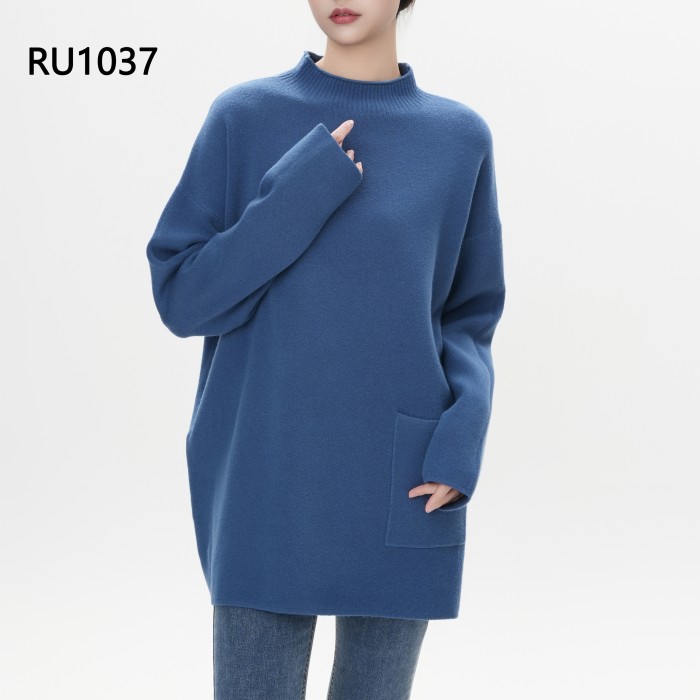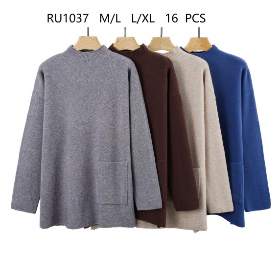 Long double-sided 12GG sweater with pocket. This is an elegant style with beautiful colors.