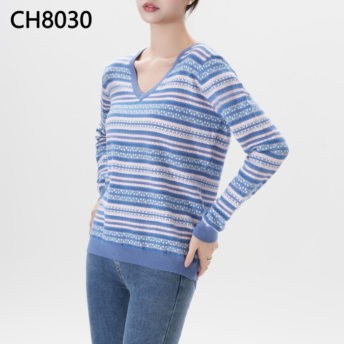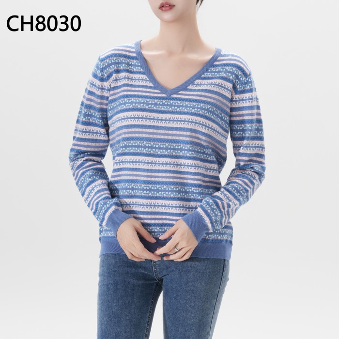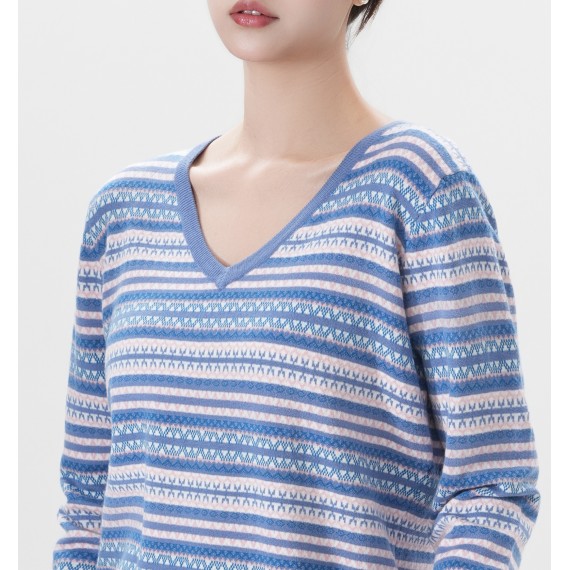 Fine plain V-neck sweater sewn with different colored threads in the borders.