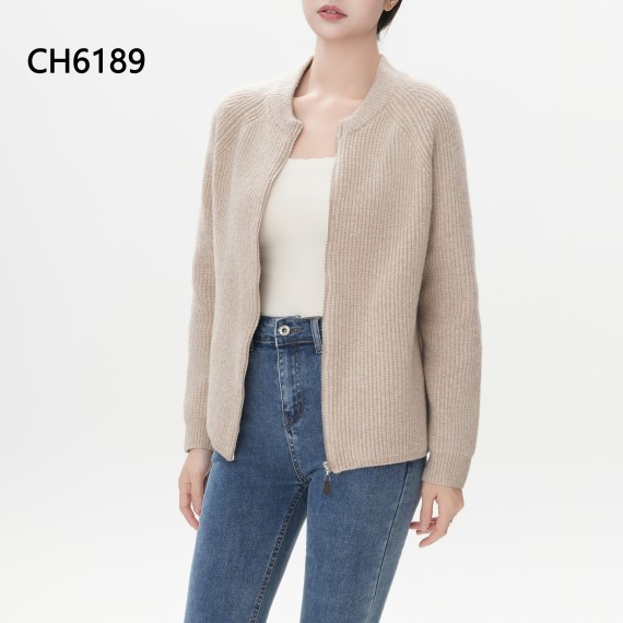 12gg double sized round neck jacket in fine, smooth knit with a zipper.