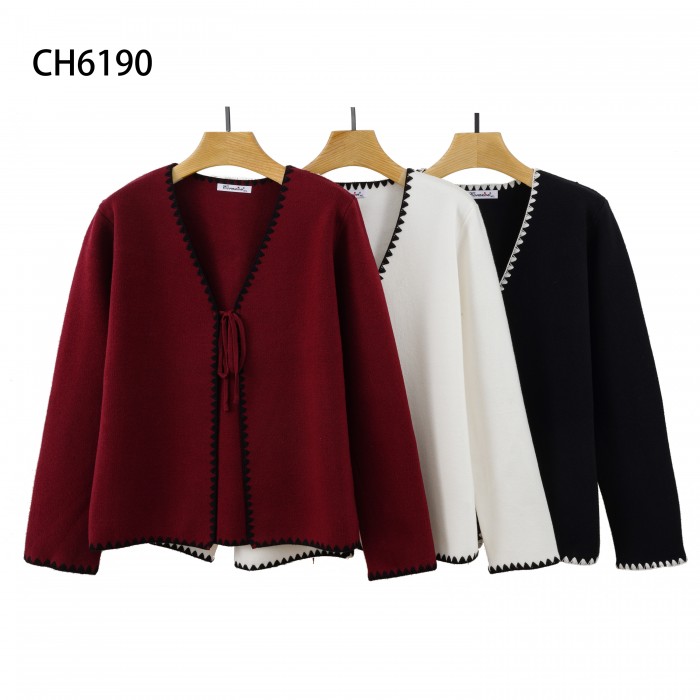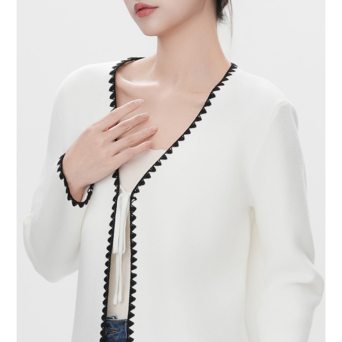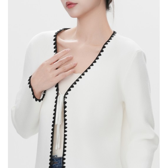 12gg double-sided contrast knit cardigan with knots. This is a very fashionable style.