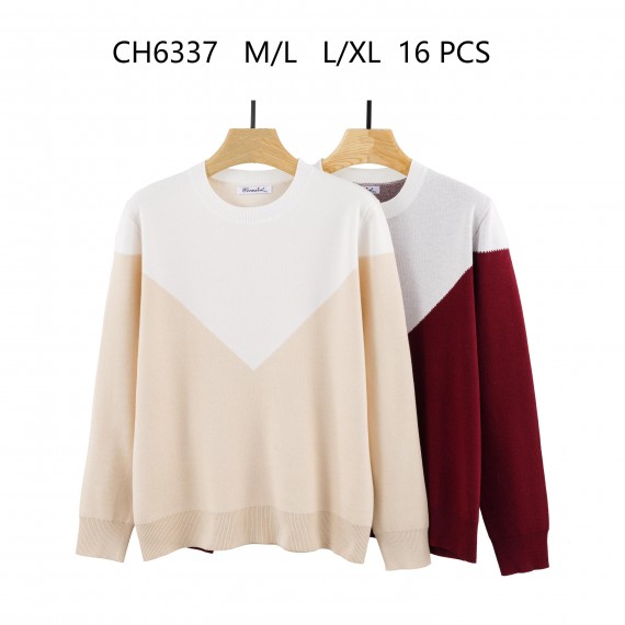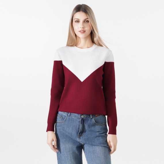 Round-neck sweater with half sleeves and floral embroidery. This is a basic style of good quality.