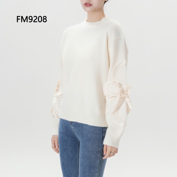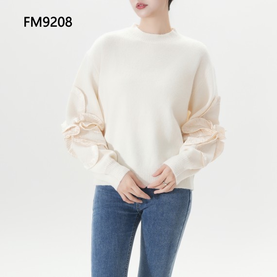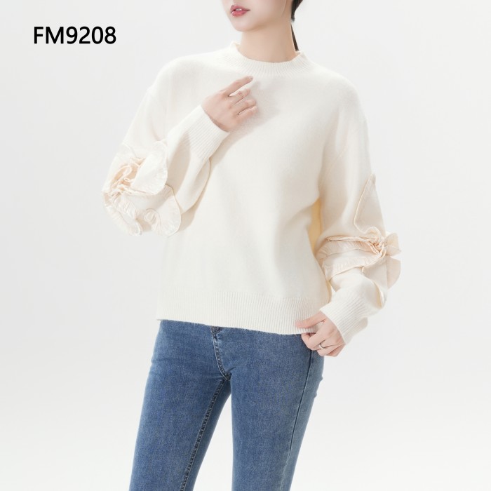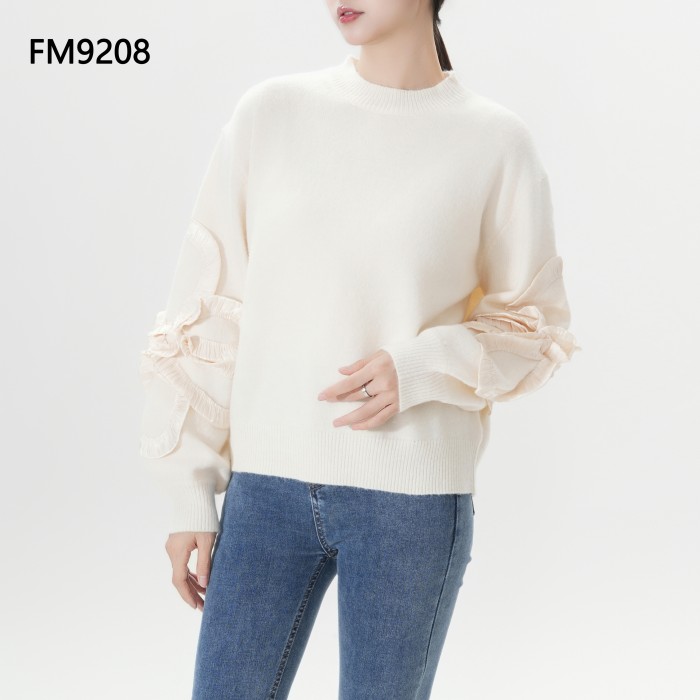 Heavyweight heathered sweater with embroidered flowers on sleeves