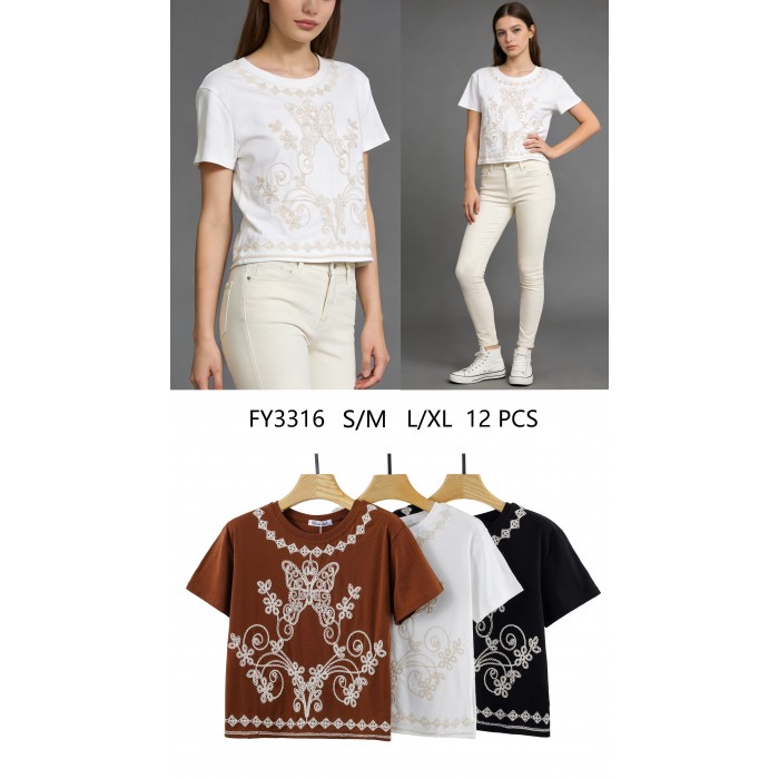 Embroidered crew neck cotton t-shirt. A cute everyday piece perfect for summer outfits.
