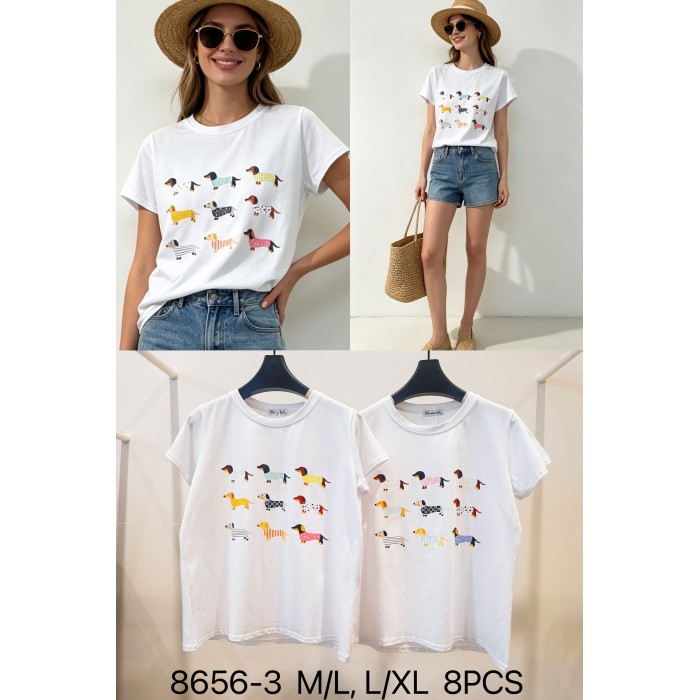 Soft-touch round-neck cotton T-shirt , dancer print. It is a cute everyday piece for summer combinations.