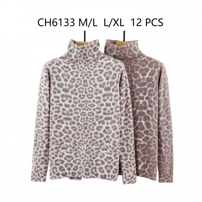 CH6133 Leopard turtleneck sweater