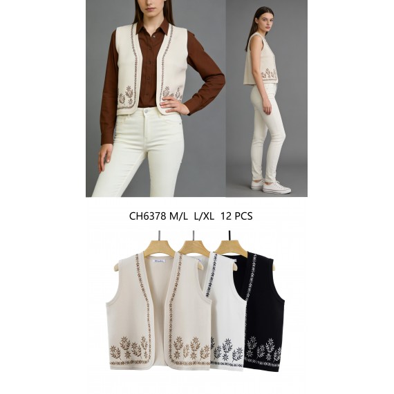 Chaleco de punto con flores bordados.