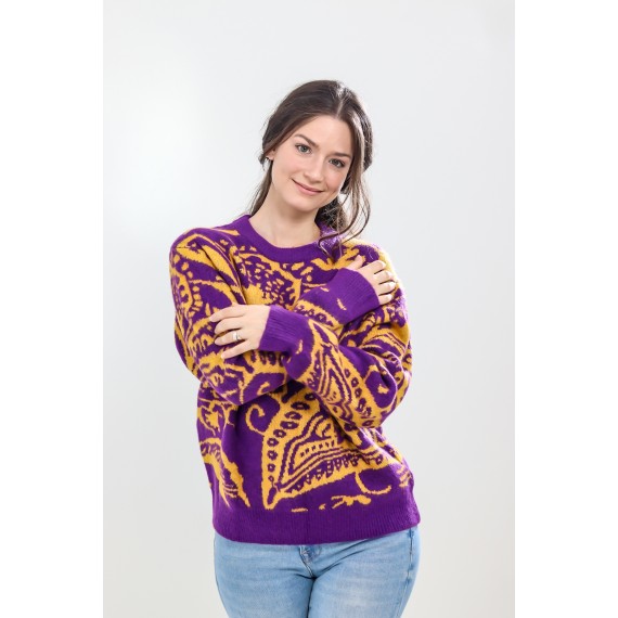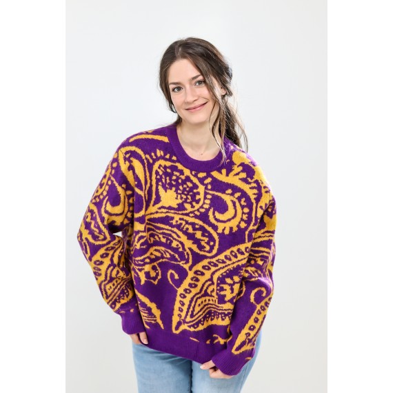 Jersey esponjoso suave cuello redondo, hecho de doble faz, de bordado paisley, es un tejido gordo ideal para invierno.