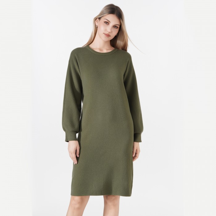 Vestido liso de punto cuello redondo, ideal para irse con leggins.