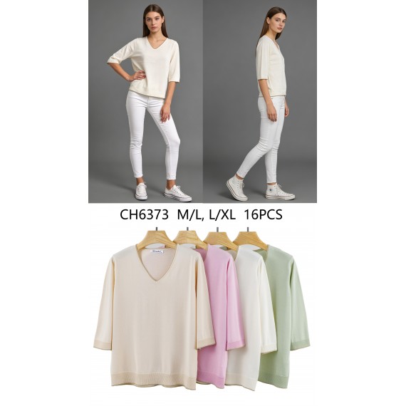 Jersey punto fino de raya con cuello pico con lurex, hilos da sensación de suavidad y frescor. Combinable para mujeres de todas edades.