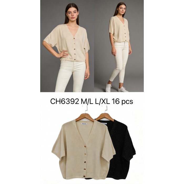 Chaqueta de hilo con lurex manga corta