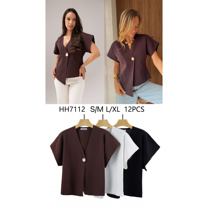 Chaqueta de hilo con boton de corazon manga corta