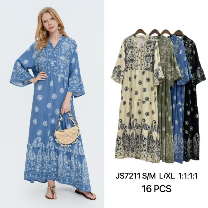 Vestido tipo camisero de manga corta. Es una pieza de uso diario para las combinaciones de verano.